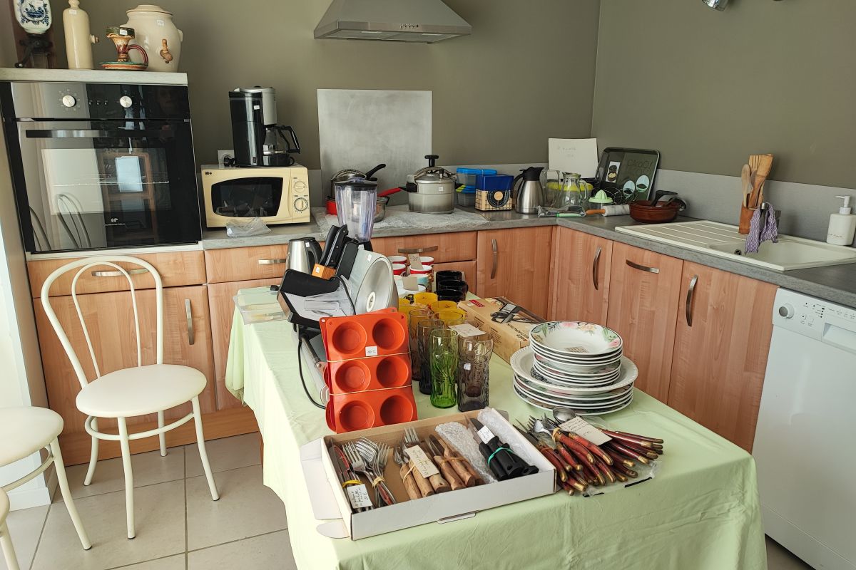 Stationnement dans le champs. Paiement en espèces. Meubles, électroménager, livres, jeux, vaisselles