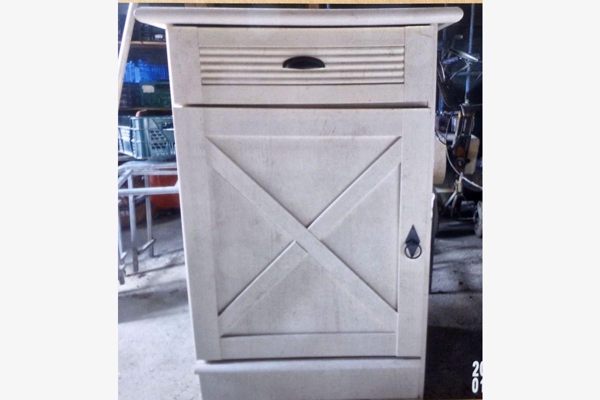 1 porte, 1 tiroir, blanc cassé, larg 64 cm x prof 47 haut 98 cm.